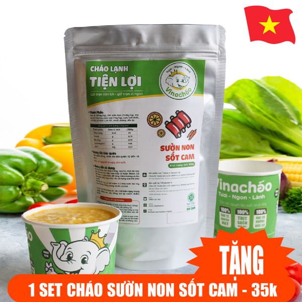Khi mua từ 4 set cháo bất kỳ, Quý khách sẽ được tặng ngay 1 set cháo Sườn non sốt cam thơm ngon chuẩn vị – trị giá 35.000đ.