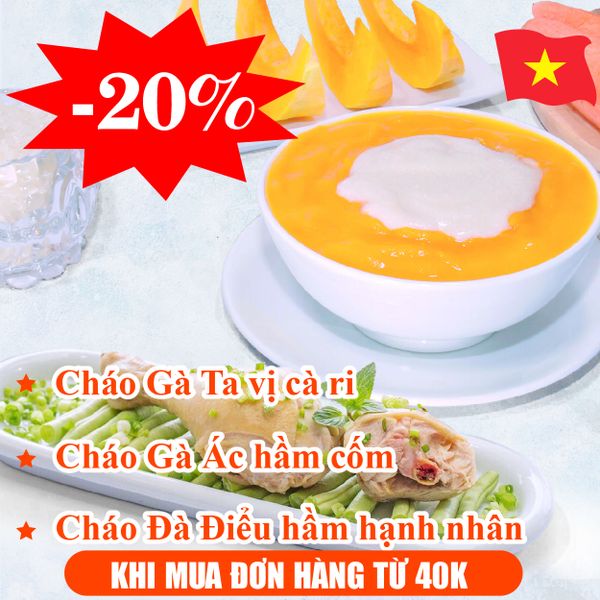 Với đơn hàng cháo tươi bất kỳ từ 40.000đ, Quý khách sẽ nhận ngay voucher giảm 20% cho 3 món mới cực hấp dẫn: